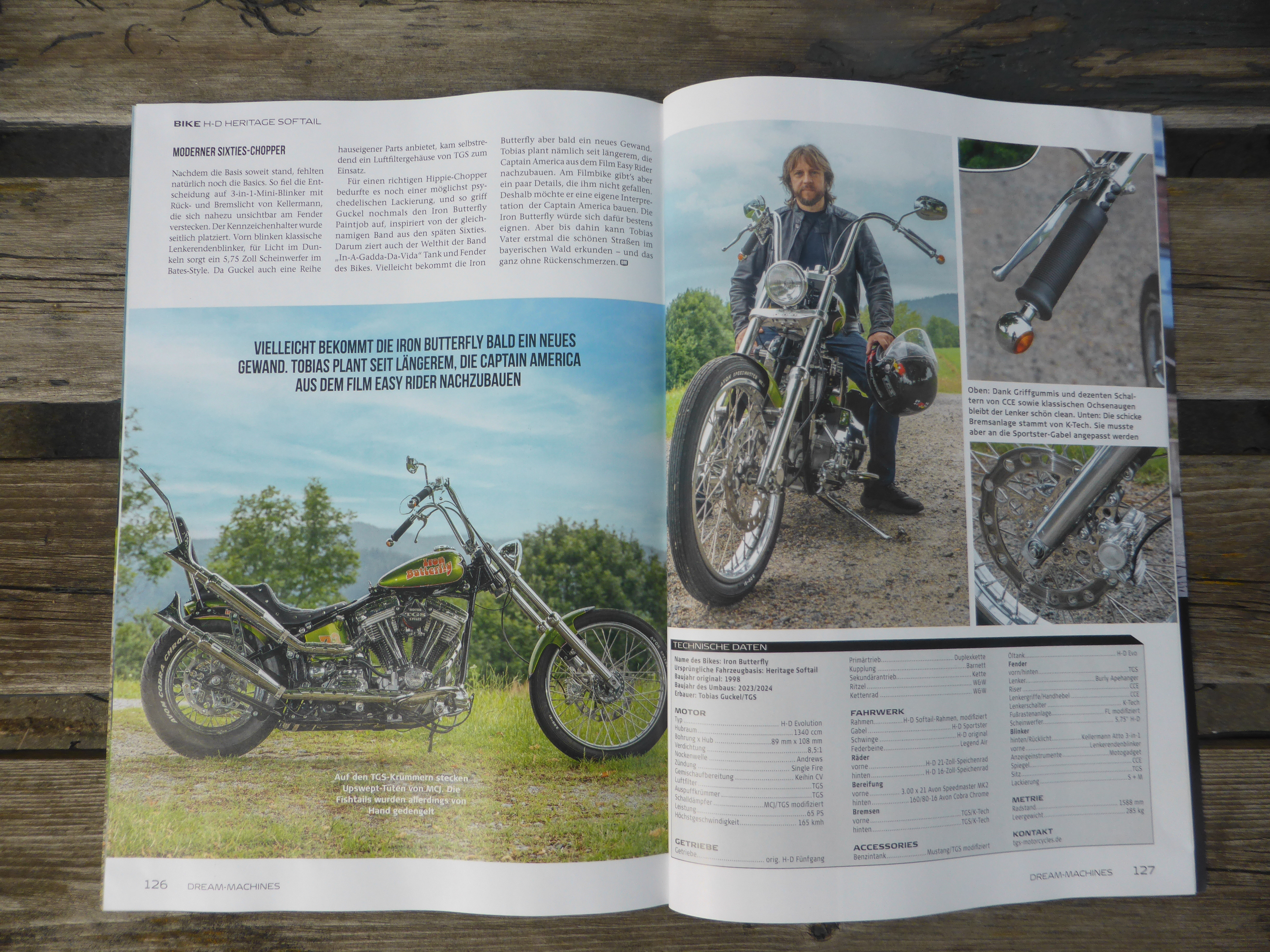 Unsere TGS Softail ist auf der Titelseite in der Zeitschrift "Dream Machines", Heft 6/12 Dezember-Januar 2013